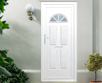 Porte D Entree Pvc Denali Blanc 90 X H 215 Cm Poussant Droit Castorama - Porte D'entrée En Bois, Métal Ou Pvc, Noir, Blanche Ou Grise, Avec Ou Sans Vitre.